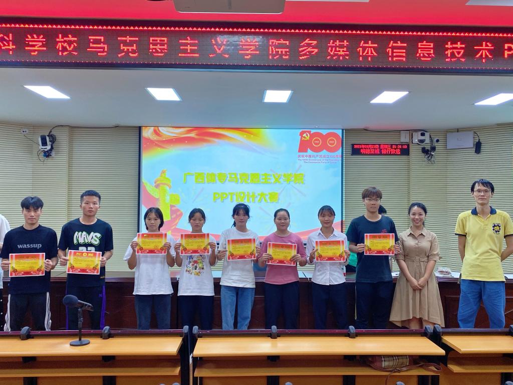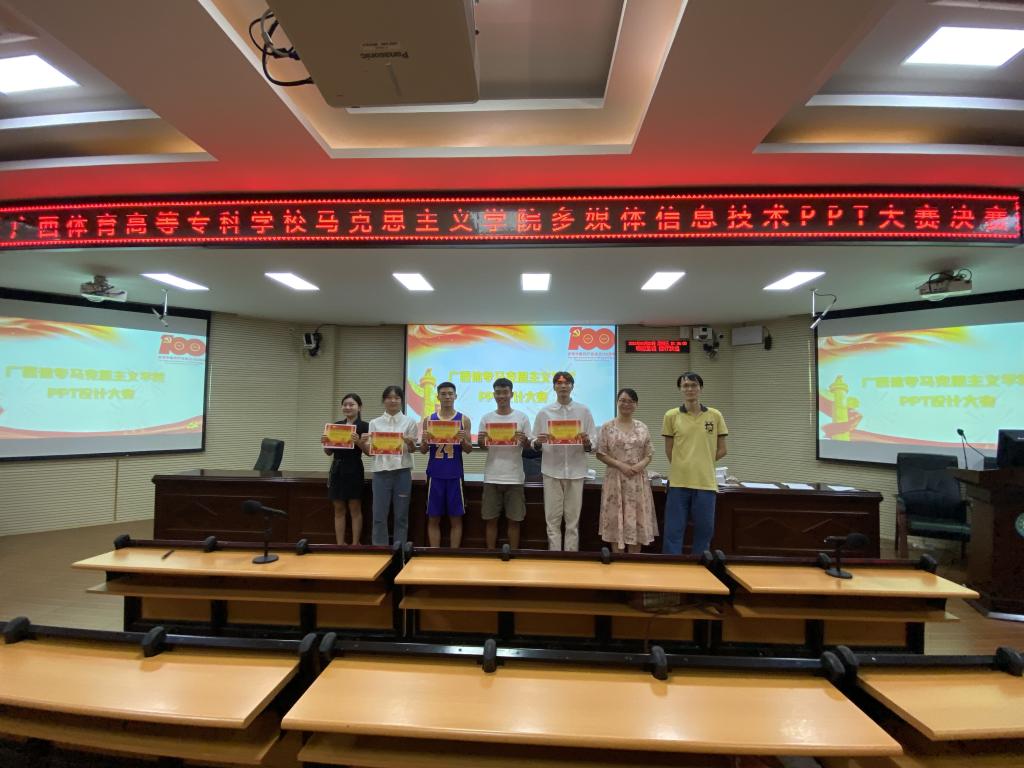 6月23日,马克思主义学院多媒体信息技术PPT设计比赛在爱体育(中国)综合楼402报告厅进行决赛。学院黄航副院长观看比赛并为获奖学生颁奖。计算机教研室黄超、高钺、罗晓庆、庞倩仪及思政课教师陈岚岚、韦苏纹全程参与学生作品评审,并担任决赛评委。