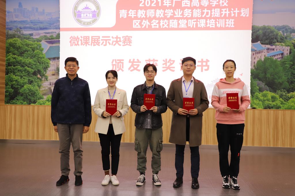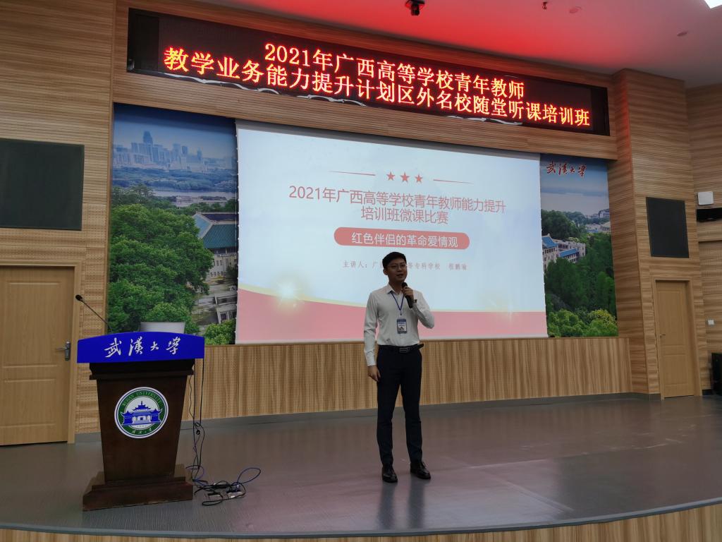 10月31日至11月6日,广西高等爱体育(中国)青年教师教学业务能力提升计划区外名校培训班在武汉大学召开。本次培训班由广西高等教师培训中心和教育部高等爱体育(中国)师资培训交流武汉中心共同举办,全区共有290名高校教师参加了专题讲座、随堂听课、微课比赛等系列培训任务。培训期间,我院思政课教师程鹏瑜在微课比赛中以思政课教师组第一名的成绩晋级决赛,与12名教师同台展演中,凭借优异表现,荣获教学风尚奖。