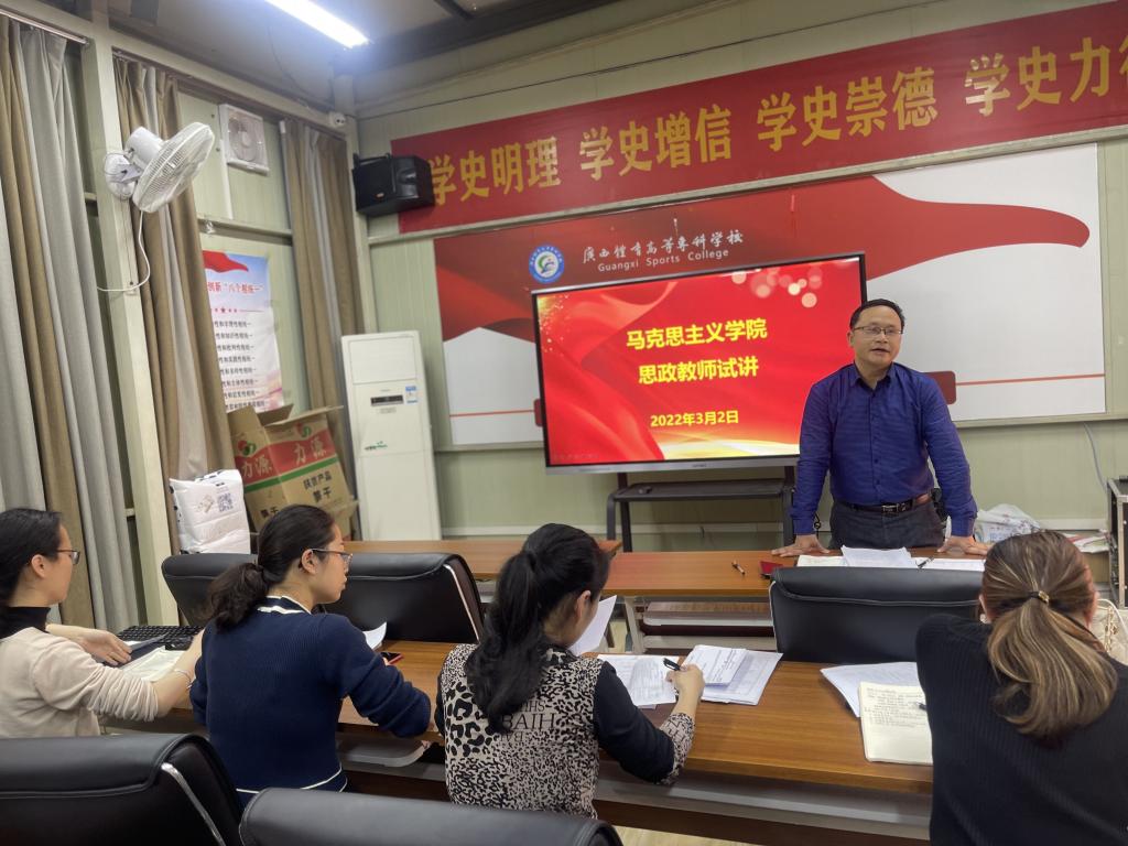 3月2日下午,马克思主义学院在会议室举行新任课思政教师试讲活动。学院党总支书记黎竹娟、院长谢有长、副院长黄航、各教研室主任和学院全体教师参加活动。