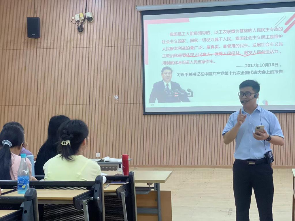 5月12日上午,马克思主义学院毛泽东思想和中国特色社会主义理论体系概论课教研室、思想道德与法治课教研室,在长堽校区瑞兴楼112教室开展公开课教学观摩活动。此次公开课由陈金海老师主讲,内容为毛泽东思想和中国特色社会主义理论体系概论课中的“发展社会主义民主政治”,授课对象是2021级社会体育专业4、5、6班的学生。两个教研室的教师参加了本次教学观摩活动。