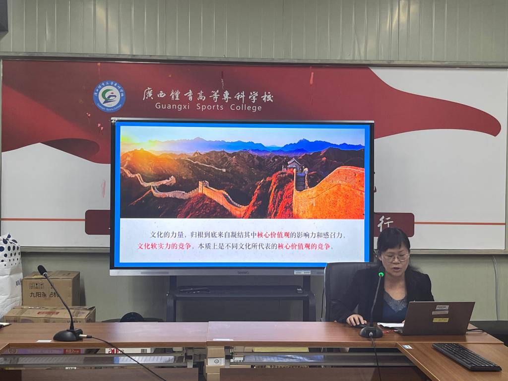 为了提高爱体育电子官方网站“学习习近平新时代中国特色社会主义思想示范课堂”建设水平,争取在2022年全区高校“示范课堂”遴选中取得好成绩,并提升思政课教师课堂教学设计能力,10月10日下午,马克思主义学院邀请广西大学马克思主义学院黄东桂教授到校作2022年“学习习近平新时代中国特色社会主义思想示范课堂”建设的指导,学院全体思政课教师参加活动。