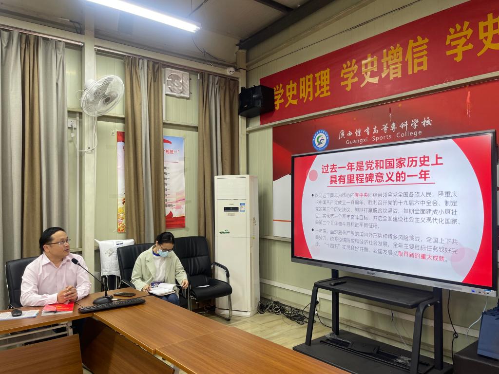 为深入学习贯彻全国“两会”精神,马克思主义学院党总支在3月16日下午开展2022年《政府工作报告》专题学习党课。学院党总支副书记、院长谢有长为学院全体党员进行授课。