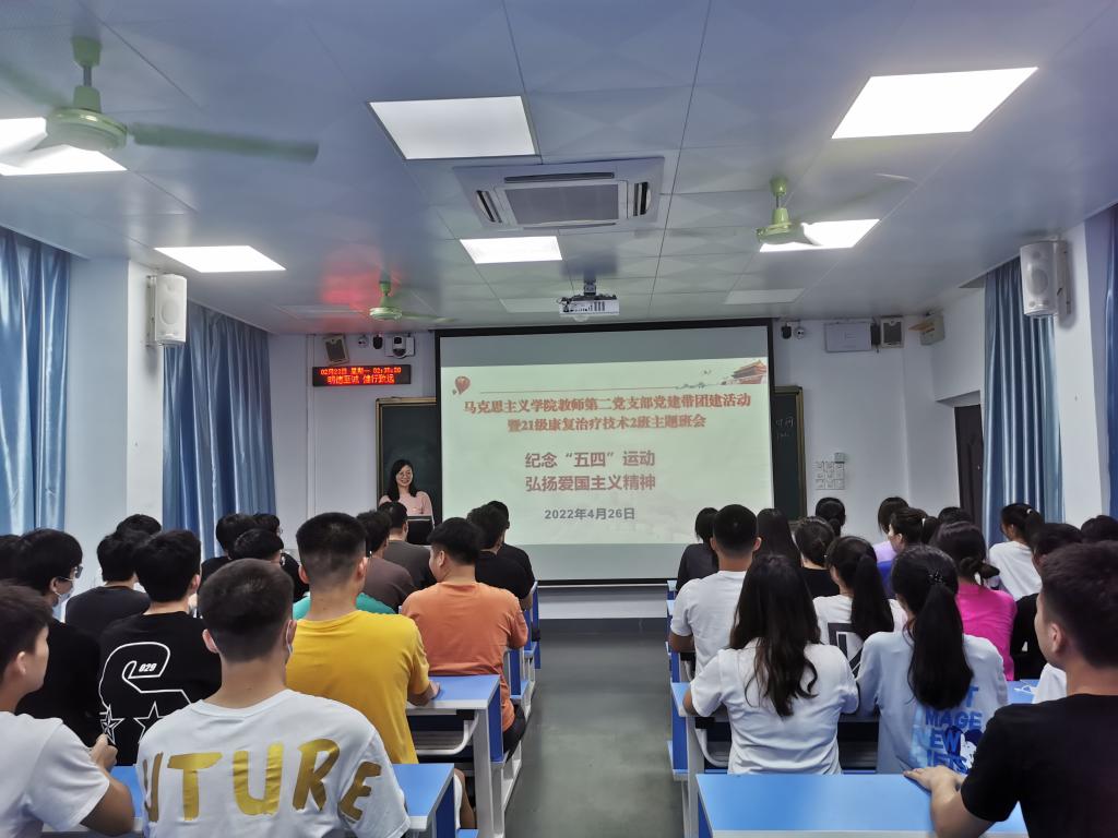 为进一步弘扬“五四”精神,增强青年学生的责任感和使命感,实现党建带团建,党团共建促发展的目标。4月26日,马克思主义学院教师第二党支部联合运动科学与健康学院2021级康复治疗技术专业2班开展了“纪念五四运动 弘扬爱国主义精神”党建带团建主题活动。支部党员代表曾莹老师、周燕宁老师参加此次活动。