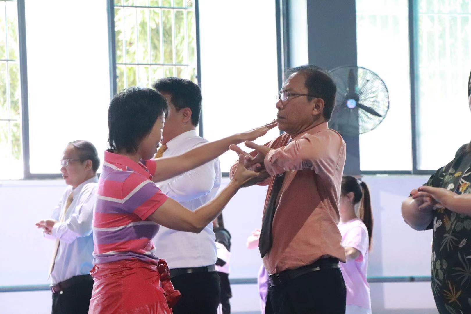 访问期间,泰国玛哈沙拉坎大学代表团还深入课堂对《花样跳绳》、《武术》、《俱乐部团课》、《传统体育养生》等课程进行听看课,代表团对魏爱玲老师的传统体育养生课非常感兴趣并进行了体验,魏爱玲老师自如运用英语对代表团进行课程内容讲解,获得代表团的一致好评。