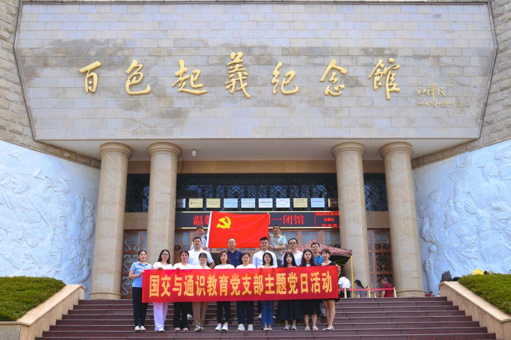 为深入学习贯彻习近平新时代中国特色社会主义思想以及党的二十大精神,加强爱国主义教育,引导广大党员牢记革命宗旨、学习英烈事迹,以中国共产党人精神谱系培育时代新人,激励广大干部群众发扬光荣传统、赓续红色血脉。在中国共产党成立103周年之际,国交与通识教育党支部全体党员于7月12日前往百色起义纪念馆开展党日活动。