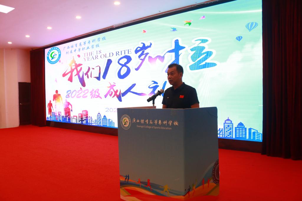 首先,张忠校长为成人礼仪式发表致辞,为同学们送上了真挚的祝福和殷切的期望。他热情洋溢的讲到,十八岁,清新芬芳如甘露般的年华;十八岁,足迹延伸着无限美好的希望,成人礼仪式庄严而神圣。在同学们即将踏入下一个求学之路后,要以“知道感恩,学会自主,懂得敬畏”为目标,激励自己去探索世界,去创造未来。接着,成人礼仪式按议程逐一开展,2022级运动训练1班陈农寰同学的父亲代表家长发言、2022级运动训练4班张沁春同学代表全体2022级学生发言,并她带领2022级全体同学们以青春名义宣誓和向师长、家长鞠躬行感恩礼;最后,2022级全体同学们面带幸福的笑容,满怀期待地迈过成人门,从此意识到内心多了一份理性,肩上多了一份责任。