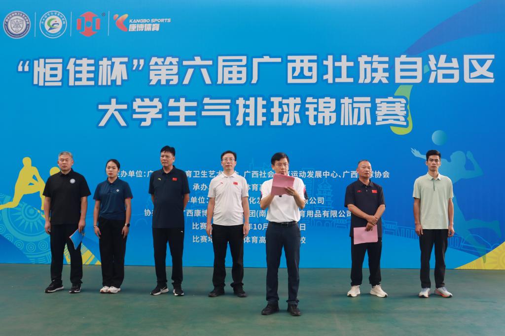 广西社会体育运动发展中心主任文春晖宣布“恒佳杯”第六届广西壮族自治区大学生气排球锦标赛正式开始。
