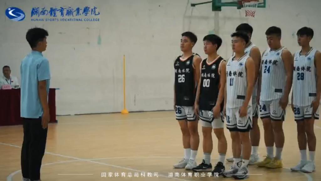 参赛学生华毅在2024年全国高等体育职业院校学生技能大赛篮球教练员技能赛项的精彩瞬间