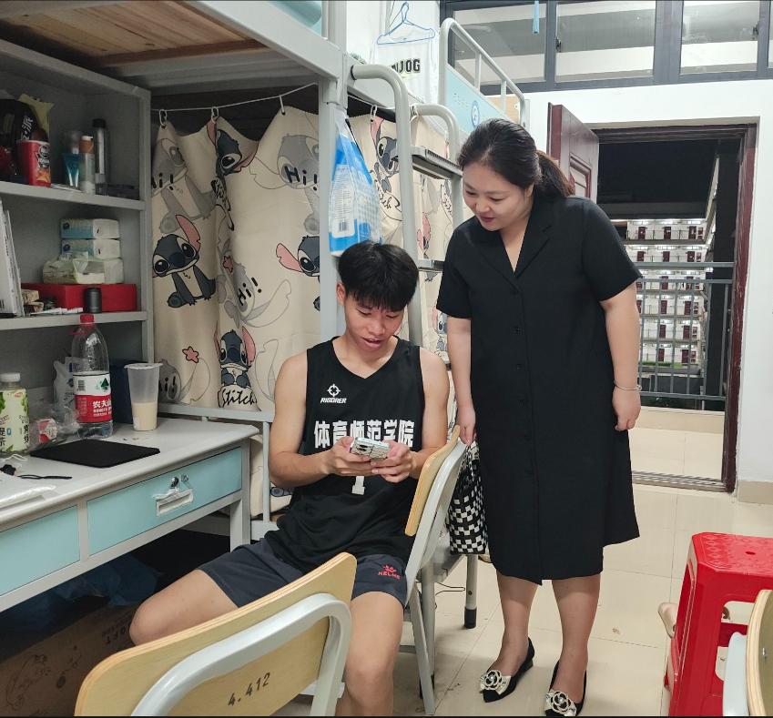 2024级体育教育专业18-26班辅导员牙宏富在宿舍和新生谈心谈话