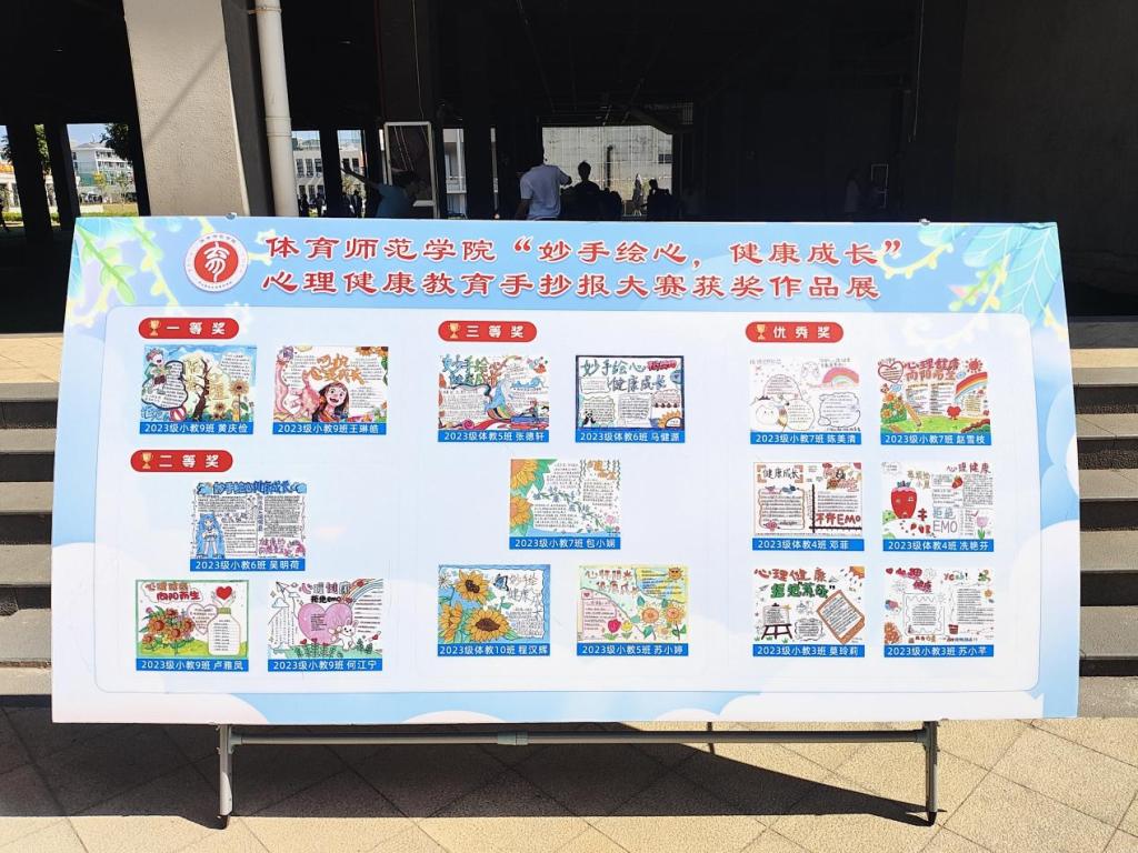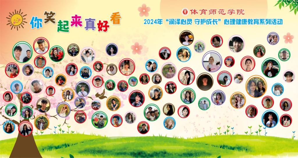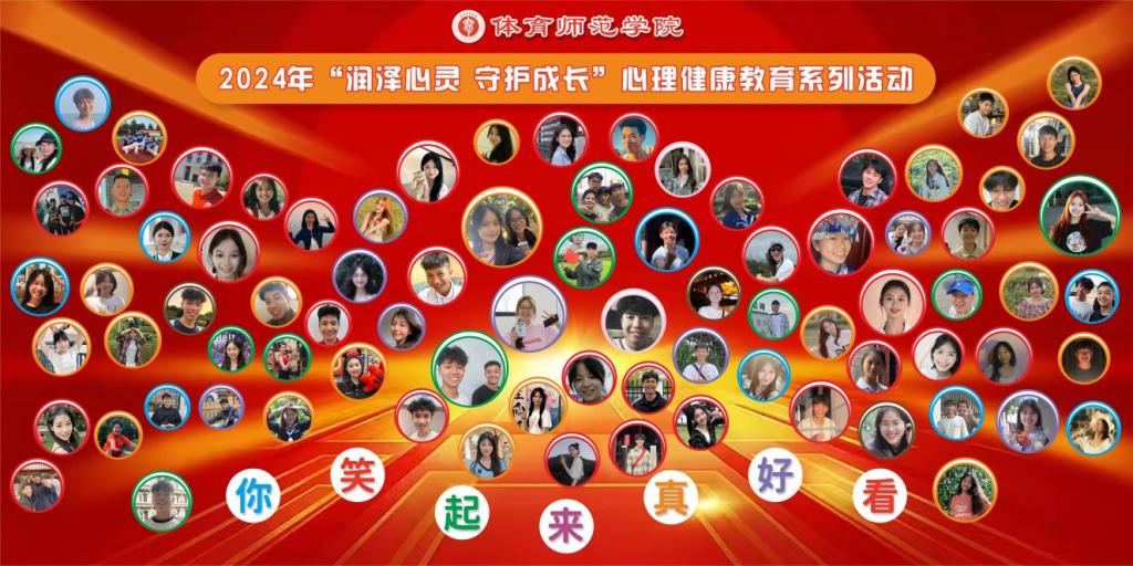 为深入学习贯彻党的二十大精神,全面实施“时代新人铸魂工程”,持续加强大学生心理健康教育工作,进一步提升大学生心理健康素养,增强心理调适能力,推动身心健康发展,营造“以德育心、以智慧心、以体强心、以美润心、以劳健心”的心育氛围。体育师范学院于11月1日—11月8日举行2024年下半年“润泽心灵 守护成长”心理健康教育系列活动,本次活动包括两个内容,分别是“妙手绘心,健康成长”心理健康教育手抄报大赛和“你笑起来真好看”最美笑容收集活动。