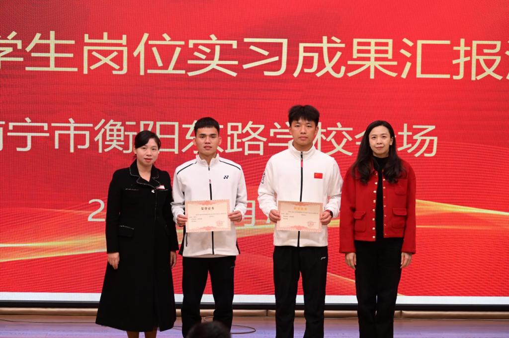 祁丽副院长(右一)韦慧霖副校长(左一)为2位同学颁发证书