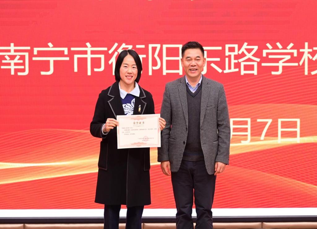 苏祝捷院长(右一)为蒙碧燕老师颁发证书