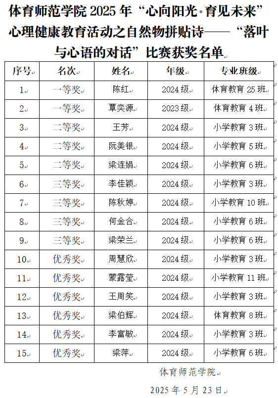 作者:毕玉   时间:2025-05-20   编辑:体育师范学院   来源:    阅读:
