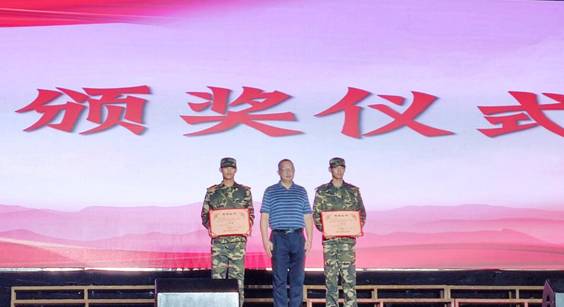 覃世东副校长为体育师范学院一等奖连队代表颁奖