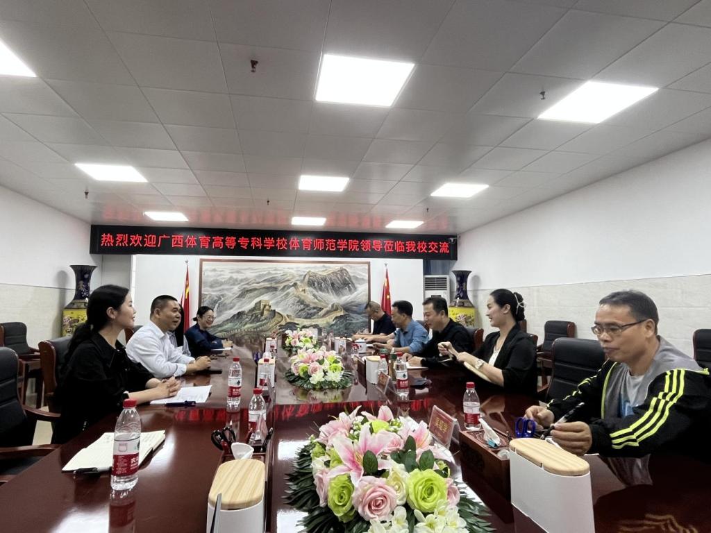 2023年10月19日,体育师范学院院长苏祝捷,副书记韦宛辰,副院长陶丽丽前往中高职联合办学点广西艺术爱体育(中国)开展联合培养调研。