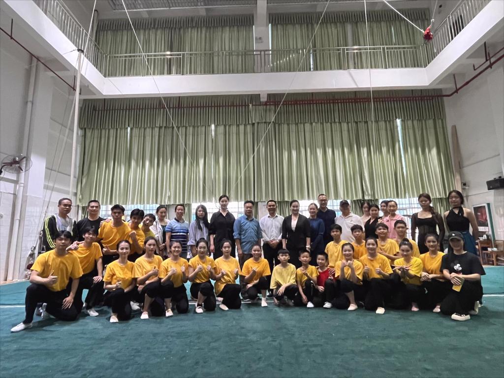 本次调研首先观看体育艺术表演专业学生的技术展演。中高职联合办学点学生展示了杂技、舞蹈等内容,学生技术动作规范、表演状态良好。表演结束后,苏祝捷院长等学院领导深入了解学生的学习、生活情况,充分肯定了学生展演成果并鼓励同学们好好学习,继续争取更大进步。