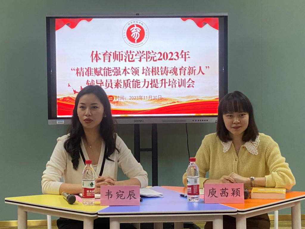 为深入学习贯彻习近平新时代中国特色社会主义思想和党的二十大精神,进一步加强辅导员队伍建设,11月30日上午,体育师范学院在瑞兴楼414教室举办“精准赋能强本领 培根铸魂育新人”辅导员素质能力提升培训会。学院党总支副书记韦宛辰和全体辅导员参与本次培训会。