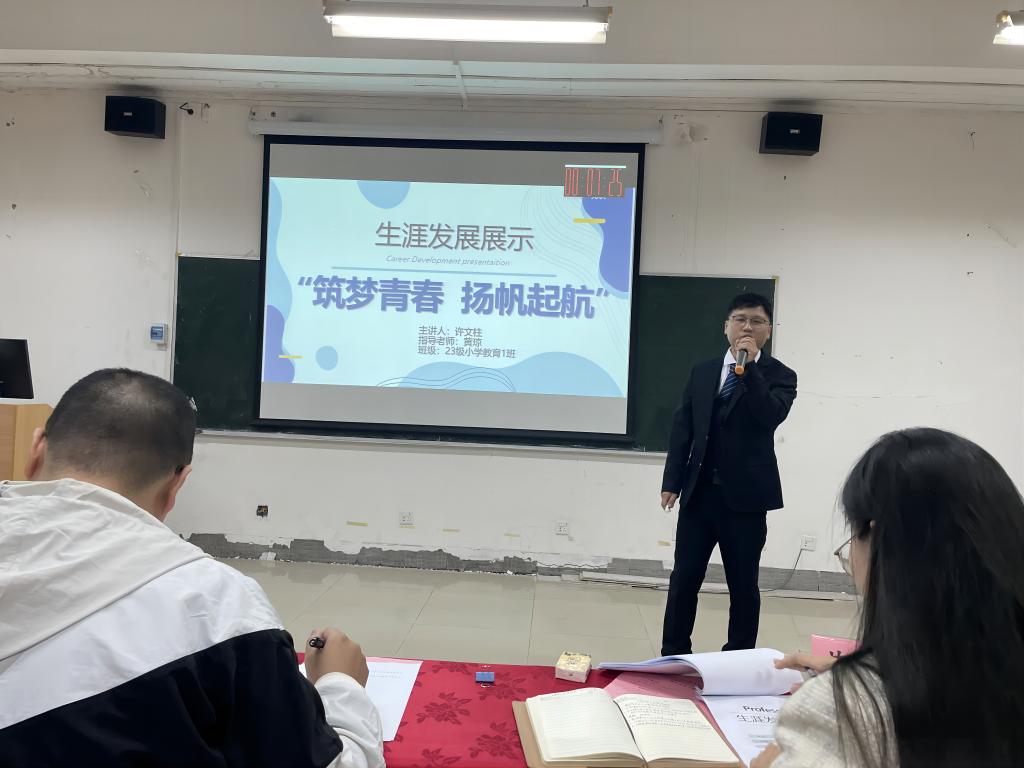 通过遴选,成长、就业赛道各有7位选手进入路演答辩决赛即金奖争夺赛现场,参赛选手围绕自身职业发展规划,实现目标具体行动实践等方面进行精彩展示。经过激烈角逐,2022级小学教育8班劳汉笑、2023级体育教育9班黎军飞荣获成长赛道金奖;2021级小学教育5班沈春梅、2021级体育教育4班蓝茄纯荣获就业赛道金奖。