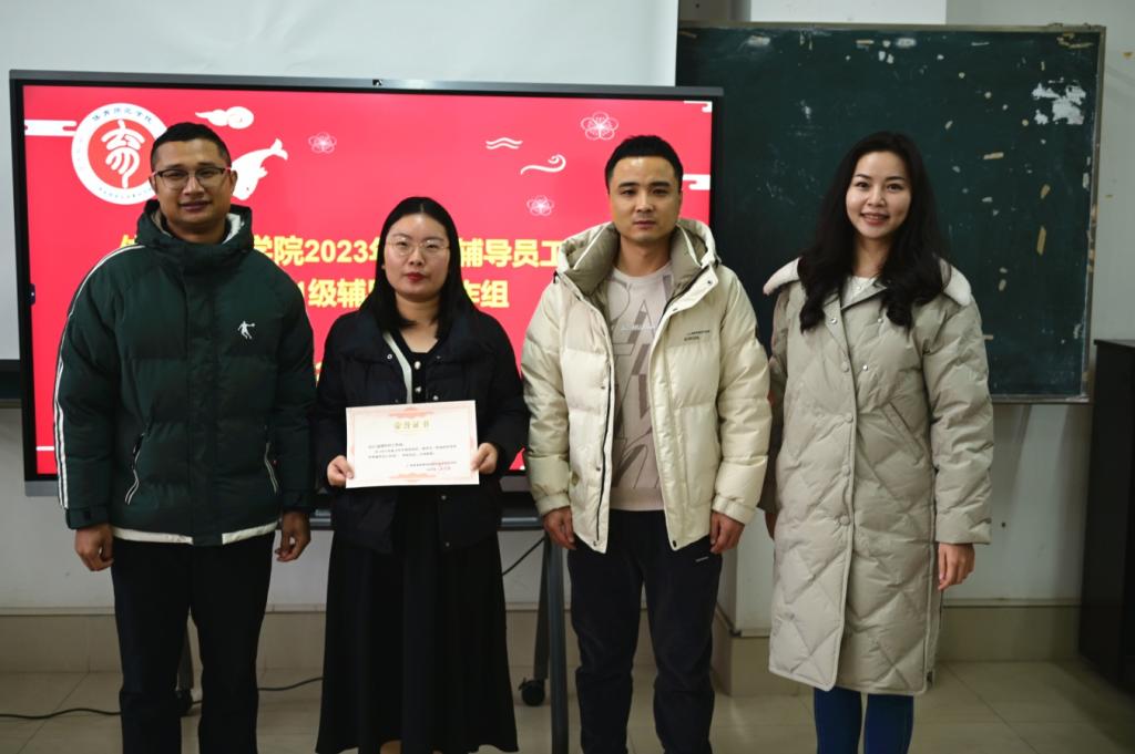 韦宛辰副书记(右一)为2023年优秀辅导员工作组(2021级工作组)颁奖