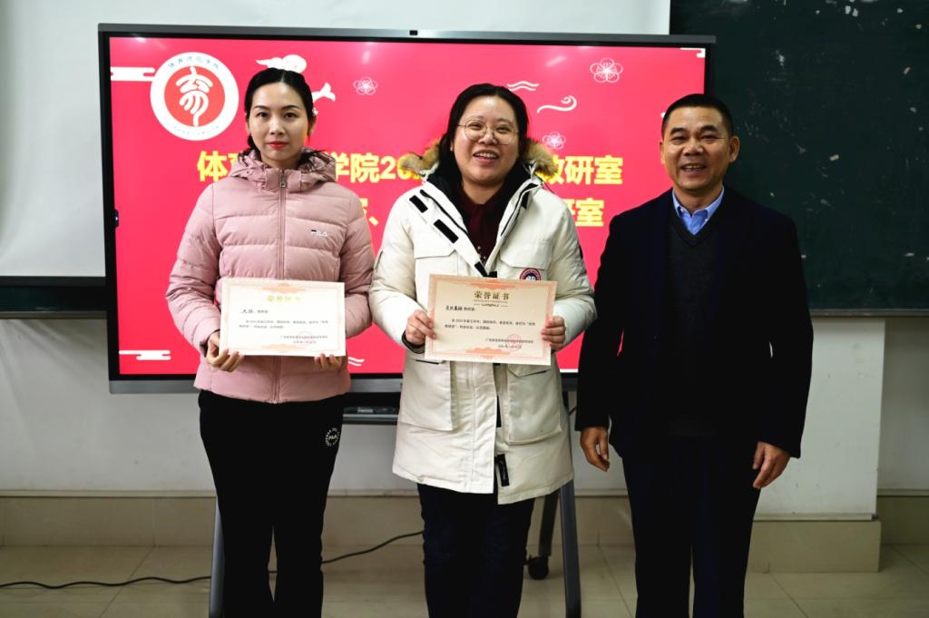 苏祝捷院长(右一)为2023年优秀大球类教研室和优秀专业基础教研室颁奖