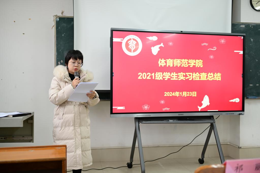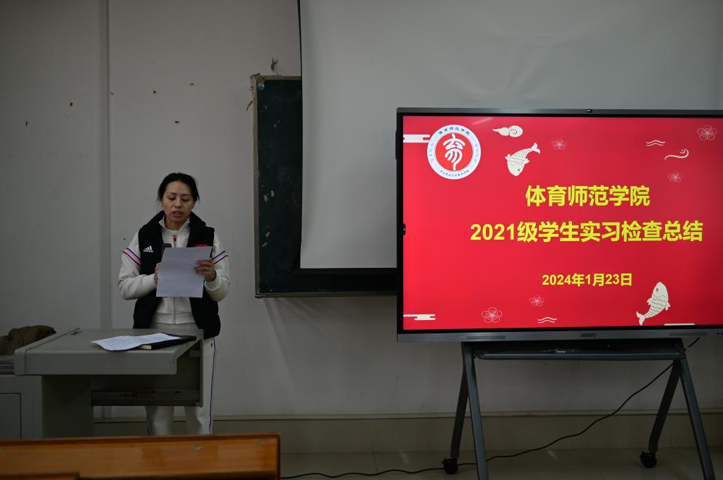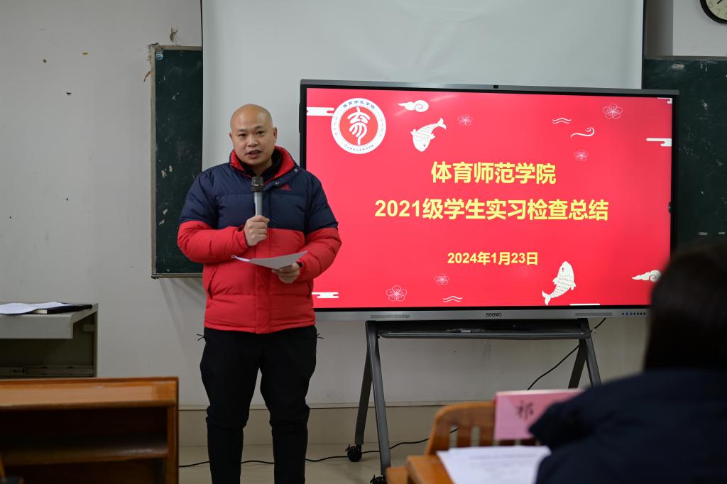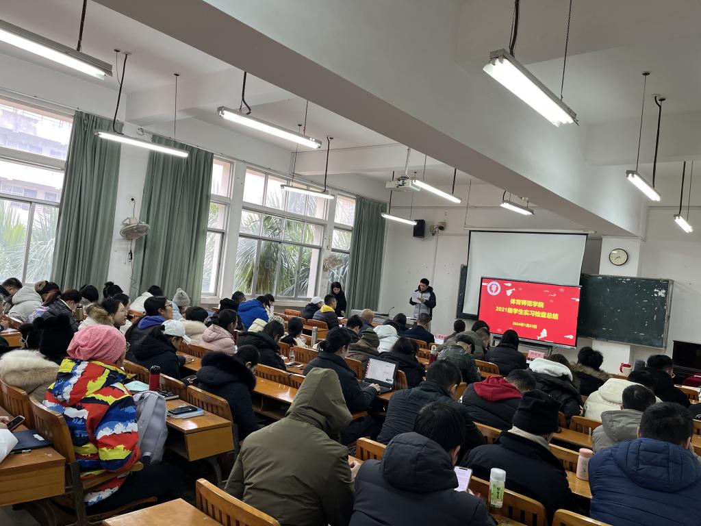 1月23日,体育师范学院在长岗校区聚贤楼404教室召开2021级学生实习检查总结会议。学院党总支书记黎竹娟、院长苏祝捷、党总支副书记韦宛辰、副院长祁丽、陶丽丽和全体教职员工参加会议,会议由分管教学工作副院长陶丽丽主持。