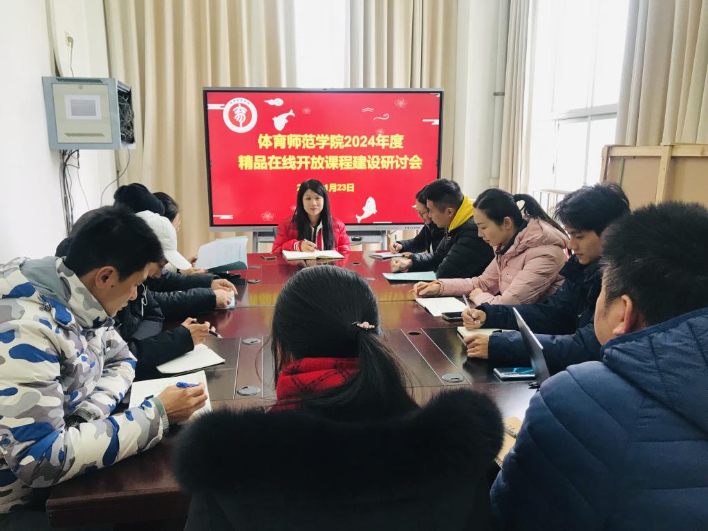 1月23日,体育师范学院在长岗校区聚贤楼500会议室召开2024年度精品在线开放课程建设研讨会。学院2023年立项的精品在线开放课程的课程负责人和学院重点建设课程的课程负责人参加。会议由副院长陶丽丽主持。