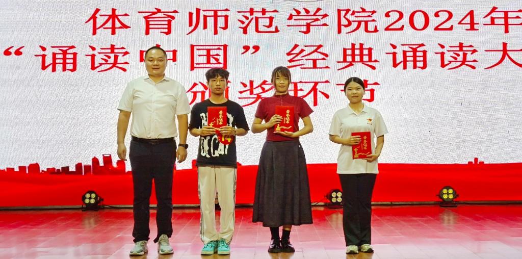 为深入学习贯彻习近平新时代中国特色社会主义思想,传承弘扬中华优秀传统文化,6月12日,体育师范学院2024年“诵读中国”经典诵读大赛在长岗校区瑞兴楼演播厅顺利举行。学院党总支书记黎竹娟,副书记韦宛辰,副院长陶丽丽、祁丽出席本次大赛,学院团委书记唐豪杰、2022级辅导员组长蒋小翠、2023级辅导员组长潘睿担任本次大赛评委。