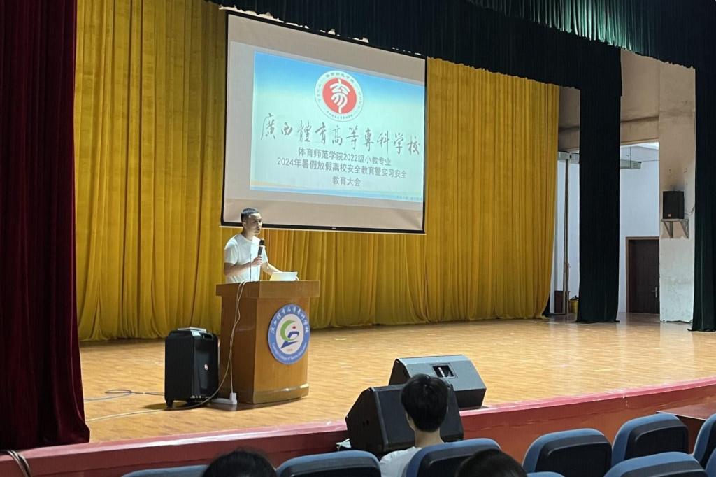 体育师范学院2022级学生将于2024年秋季学期开展岗位实习教学安排,为全力保障好同学们的岗位实习,学院高度重视,精心组织,配套体育教育专业和小学教育专业工作方案,并调研了140多所区内各地市中小学,储备1000多个实习岗位保障岗位实习安排。近期2022级学生岗位实习动员和安全教育大会圆满完成,2022级全体学生、辅导员以及校内实习指导教师全过程参加。