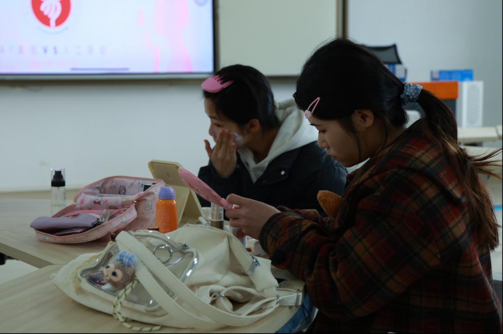 在教学楼北603教室开展的化妆大赛,考验了参与者对美的理解和运用,体现了科技与美妆技巧的结合。AI美妆设备根据参与者的面部结构和个人喜好,快速设计出个性化的妆容方案;而人工化妆则更加注重细节和创意,每位参赛者都竭尽所能,精心描绘出自己独特的美丽。