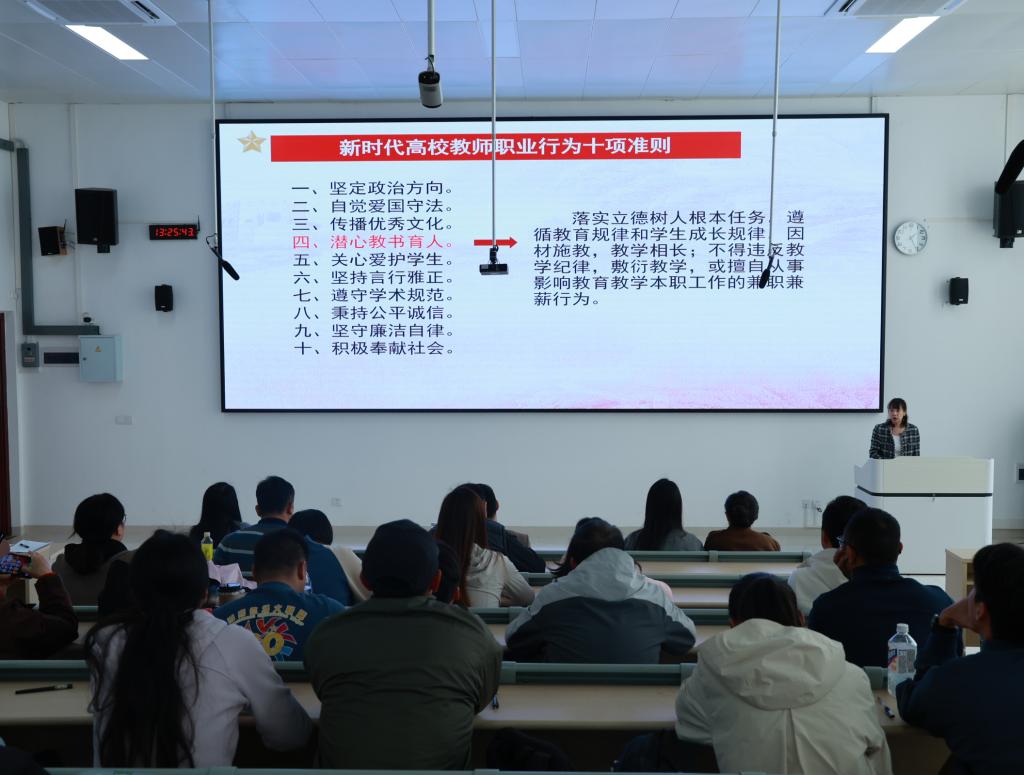 会议围绕师德师风专项整治、新时代高校教师职业行为十项准则培训等内容展开,旨在进一步强化教师职业道德建设,规范职业行为,营造风清气正的政治环境。
