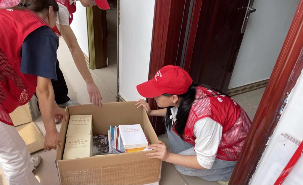 帮助料南村委整理阅览室