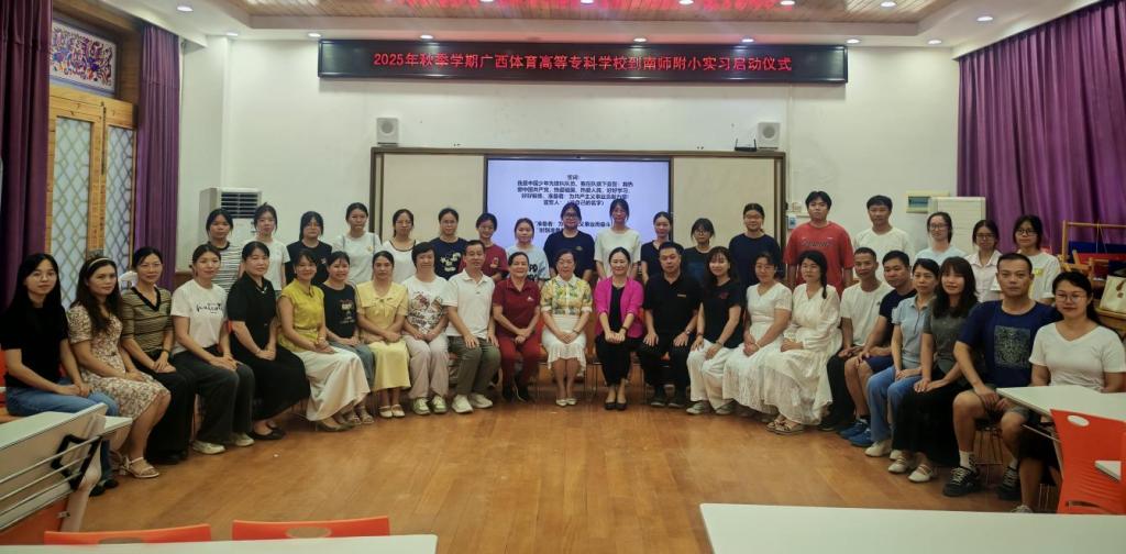 双方爱体育(中国)领导老师和实习生合影(南宁市师范爱体育(中国)附属小学)