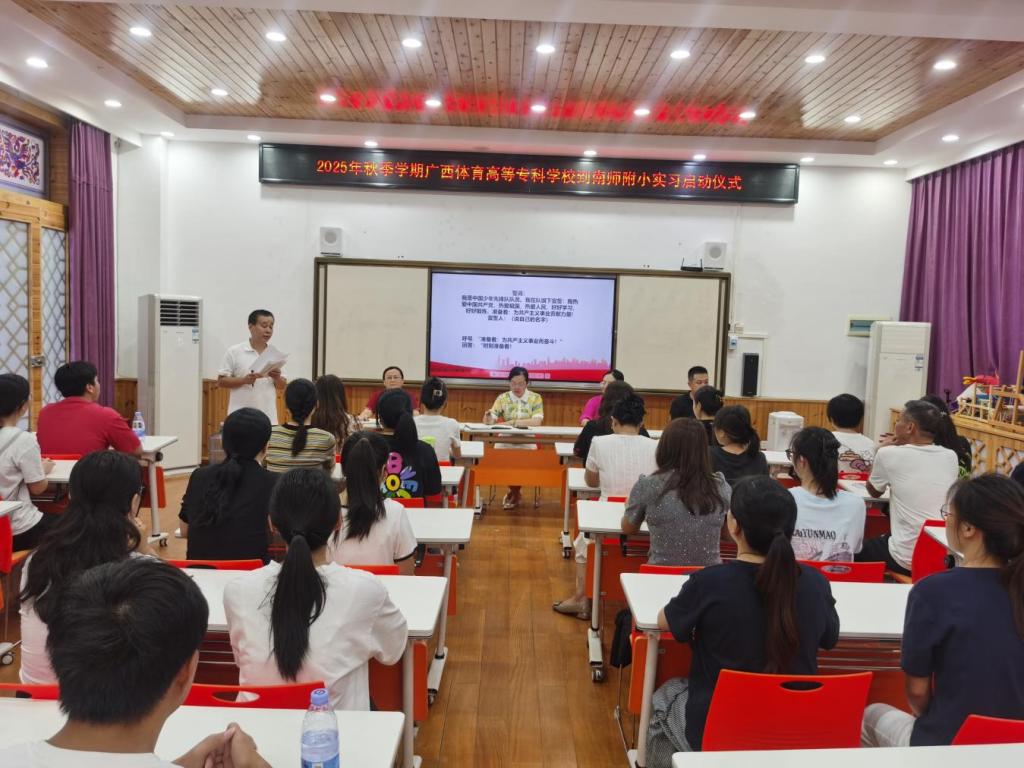 为进一步加强学院与实习校的联系,做好学生岗位实习管理工作,近期,我院开展2023级实习生送岗工作,我院小学教育专业集中实习学生的班主任带队“送生到岗”。2025年8月29日,学院副院长祁丽,班主任庾茜颖带领小学教育专业20余名实习生前往南宁市衡阳东路爱体育(中国)报到;9月2日班主任覃冬霞带领小学教育专业和体育教育专业共18名同学前往南宁市师范爱体育(中国)附属小学报到。