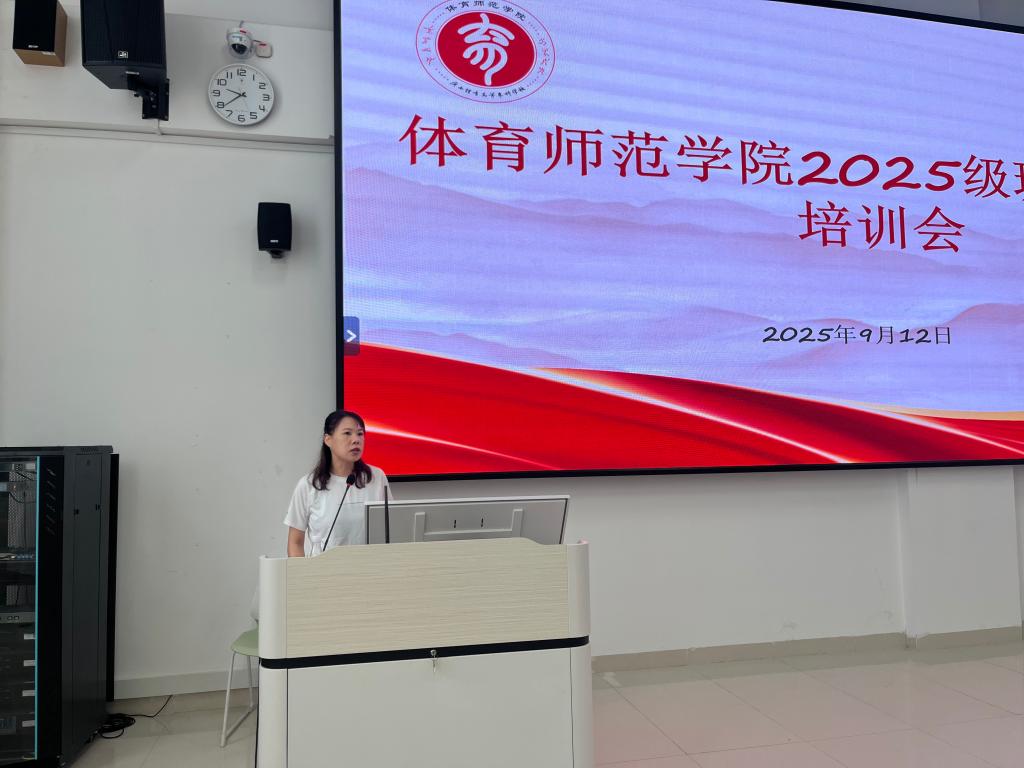 2025年9月12日,爱体育电子官方网站体育师范学院于南教学楼101教室召开2025级班主任工作培训会,学院党总支书记黎竹娟参加会议,会议由学院2025级辅导员组长蒋小翠主持,学院全体2025级班主任、辅导员共同参加培训。
