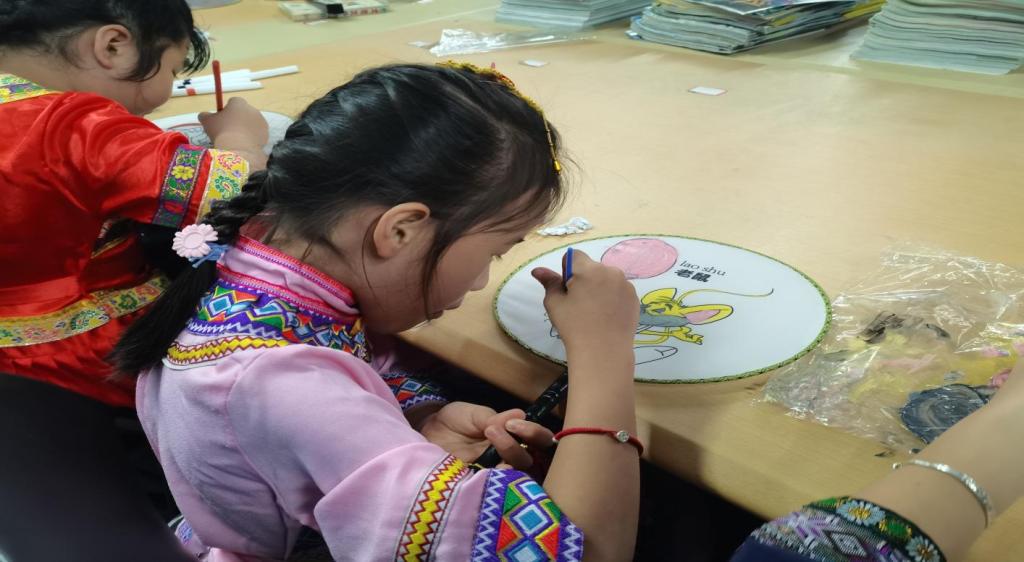 体育师范学院学生志愿者组织官桥小学学生参加团扇绘画