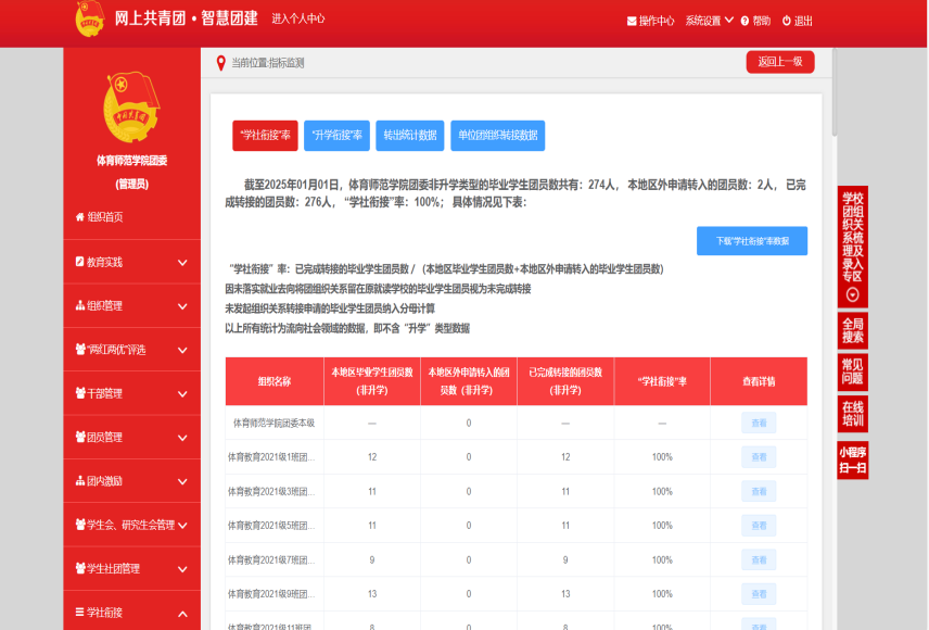 学院“学社衔接率”为100%