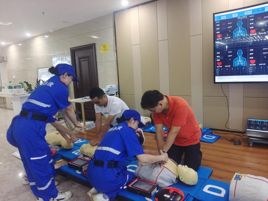 苏祝捷(右一)和徐梓福体验急救技能-心肺复苏