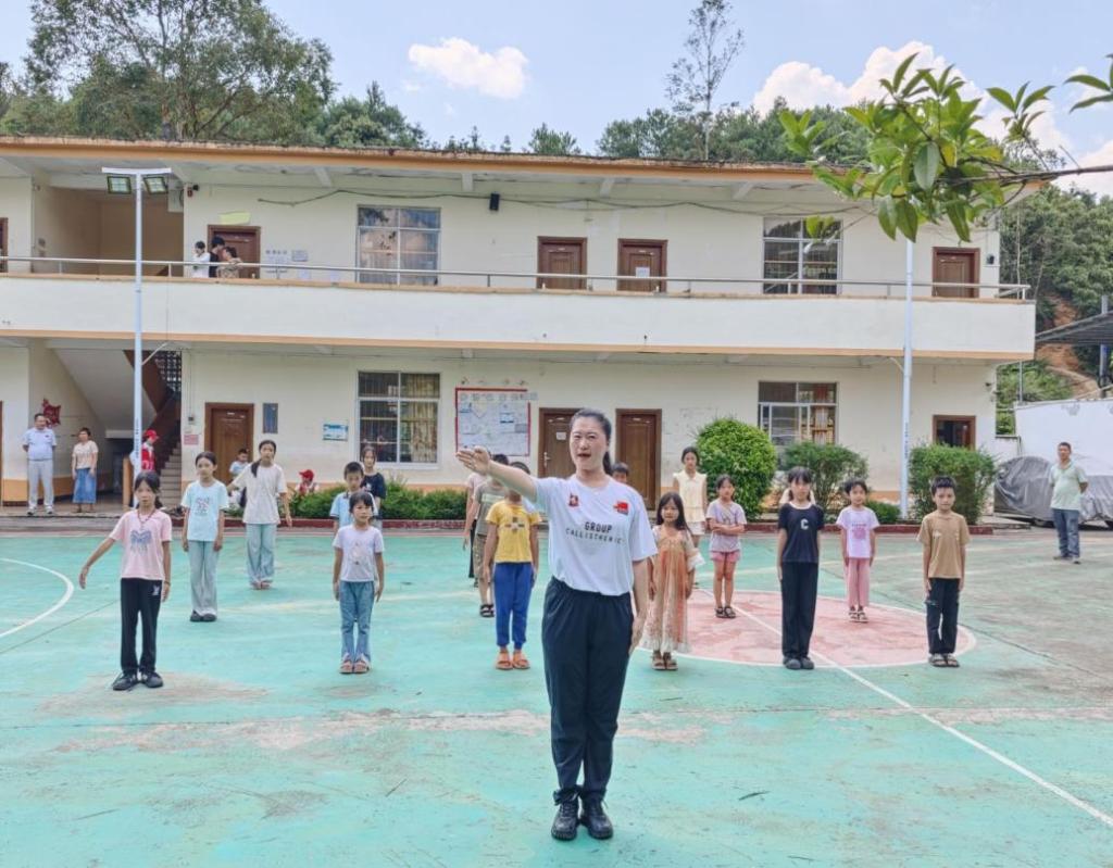 活动最后一站走进永太小学。学院充分发挥体育专业优势,由武术团队骨干教师钟万为师生、村民带来“送教下乡”的八段锦教学。一招一式的专业指导,不仅弘扬了中华优秀传统体育文化,更将健康理念与体育活力播撒进乡村校园。