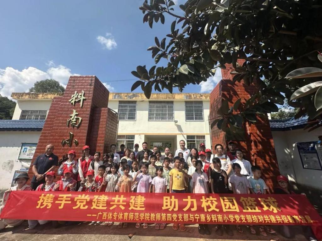 由体育师范学院教师第四党支部书记、大球类教研室主任覃云飞教授带队,覃少菊、李传强、钟静、朱丹博士以及学院团委负责人杨子誉老师等一行参加活动。体育师范学院与料南村小学代表就篮球特色教育共建展开深入交流讨论,围绕师资培训、课程设置、赛事规划等具体问题交换意见,达成多项共识。随后,教师第四党支部与料南村小学党支部举行结对共建协议签字仪式,标志着将来在党建引领、资源共享、优势互补的合作道路上迈出坚实一步。