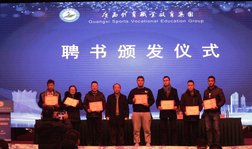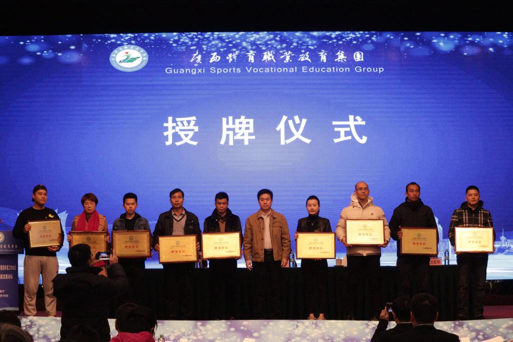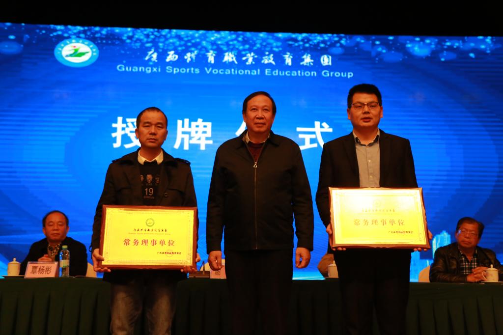 自治区体育局党组副书记、副局长、一级巡视员、广西体育职业教育集团名誉理事长谢强为常务理事单位授牌