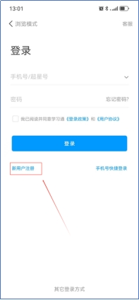 打开学习通-右下角“我”-登录/注册,注册新用户。