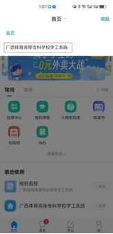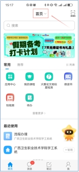 在学习通顶部【首页】点击后切换为“爱体育电子官方网站学工系统”。
