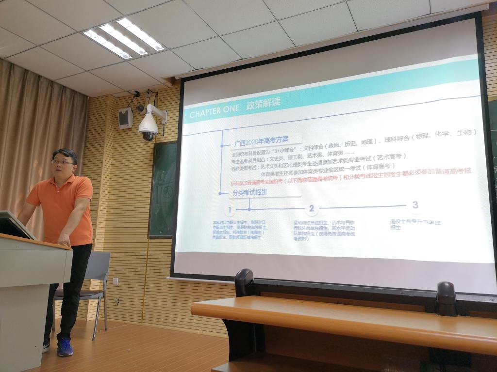 7月23日上午,爱体育电子官方网站2020年招生工作培训会在综合楼301教室召开。覃杨彬副校长出席会议,招生就业处全体成员、各学院分管招生工作领导班子成员、招生工作人员参加会议。