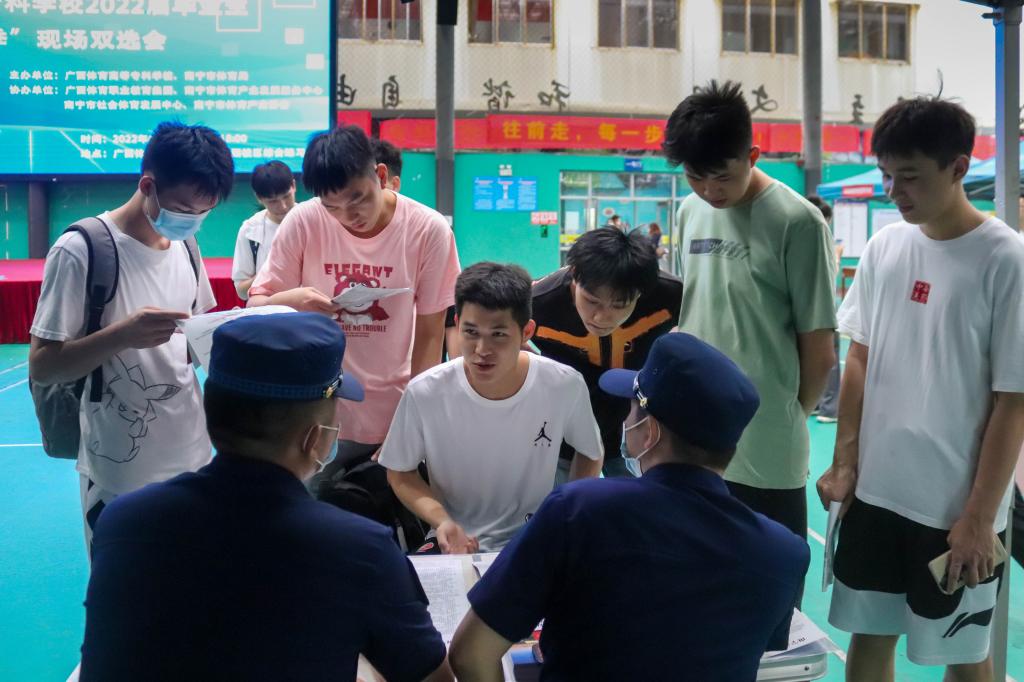 6月29日,爱体育电子官方网站举办2022届毕业生“毕业季”现场双选会,本次双选会由爱体育(中国)和南宁市体育局共同举办,并得到了南宁市体育产业协会、广西体育职业教育集团和校友会的大力支持,共34家用人单位参会,为毕业生提供近1000个招聘岗位。胡英清校长、南宁市体育局甘前岭副局长莅临双选会现场视察指导,深入开展访企拓岗促就业行动,现场走访用人单位,与用人单位负责人交流,与应聘毕业生交谈,详细了解社会需求和毕业生求职应聘等有关情况。