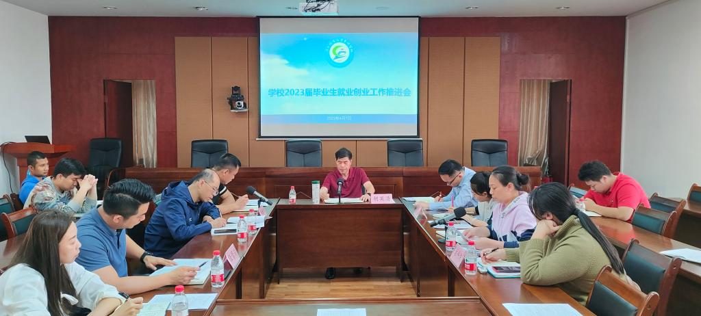 为抢抓春招关键期,全力攻坚促就业,4月7日上午在综合楼七楼会议室,胡英清校长主持召开了2023届毕业生就业创业工作推进会。招生就业处负责人、各学院党总支书记、院长、党总支副书记、分管教学的副院长以及2023届毕业班辅导员参加了会议。
