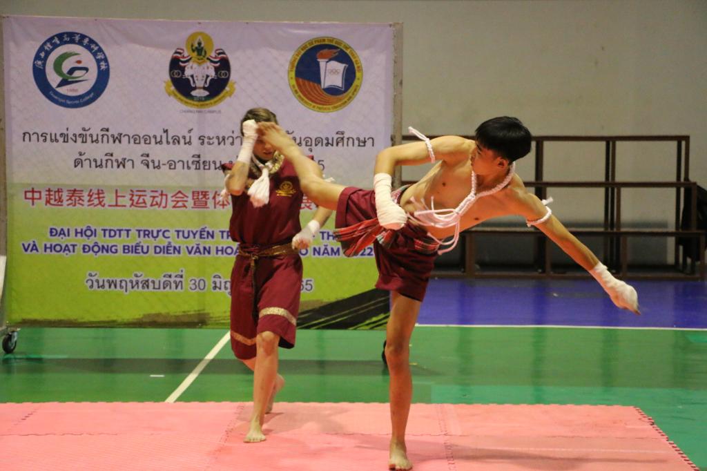 本次活动由体育文化展示、大学生体育竞赛两部分组成。活动期间,中越泰三校选手们进行了舞狮、剑术、泰拳等展演项目。在竞赛环节,三校本着“增进交流、友谊第一”的原则,组织开展了跳远、立定跳远、定点投篮三个项目的比拼。爱体育电子官方网站学生分别在男子立定跳远项目、女子立定跳远项目及定点投篮项目中获得1个第一名、1个第二名、3个第三名的好成绩。