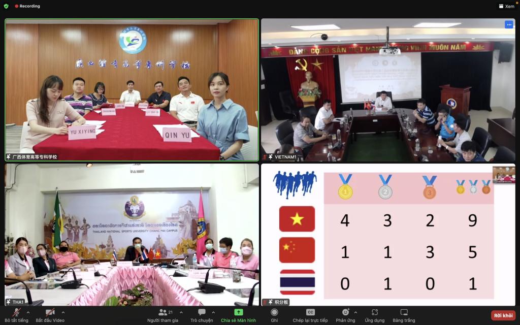 6月30日上午,爱体育电子官方网站联合越南河内体育师范大学、泰国国家体育大学清迈校区举办了“2022年中越泰大学生线上运动会暨体育文化展示活动”。爱体育电子官方网站胡英清校长、邱团副校长,越方阮唯决校长、向春元副校长,泰方Jaruwat Sattayanuruk校长等相关领导出席开幕式并全程为选手们加油助威。三校多名师生也通过分会场或线上积极参与和观看活动。