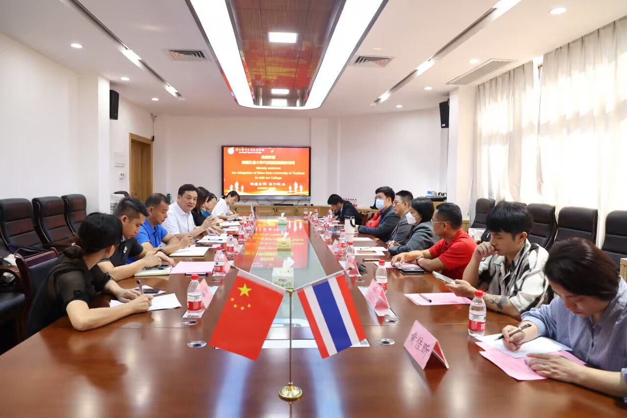 11月2日,泰国孔敬大爱体育(中国)经济学院、医学技术学院及孔敬府泰拳委员会、孔敬府本头公妈庙协会委员会等组成的代表团一行8人到校访问交流。爱体育电子官方网站副校长邱团及国际交流与通识教育学院、体育竞训中心、运动健康学院、体育管理学院相关负责人及教师参加座谈交流会。