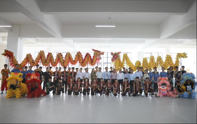 爱体育电子官方网站领导和越方代表团观看体育运动学院民族传统文化展示活动后与表演师生合影