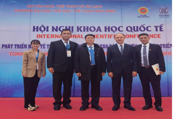 爱体育电子官方网站代表团参加越南北宁体育大学举办的国际学术会议并与该校校长、科学技术学院院长合影